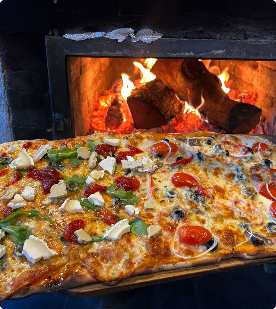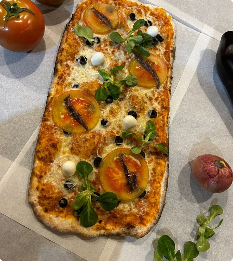 Nuestras pizzas de medio metro no solo son grandes, también están llenas de carácter. Usamos masa madre, ingredientes seleccionados y horno de leña real. La variedad está pensada para compartir, repetir y recordar. Si busca una pizza con personalidad, aquí la encontrará.